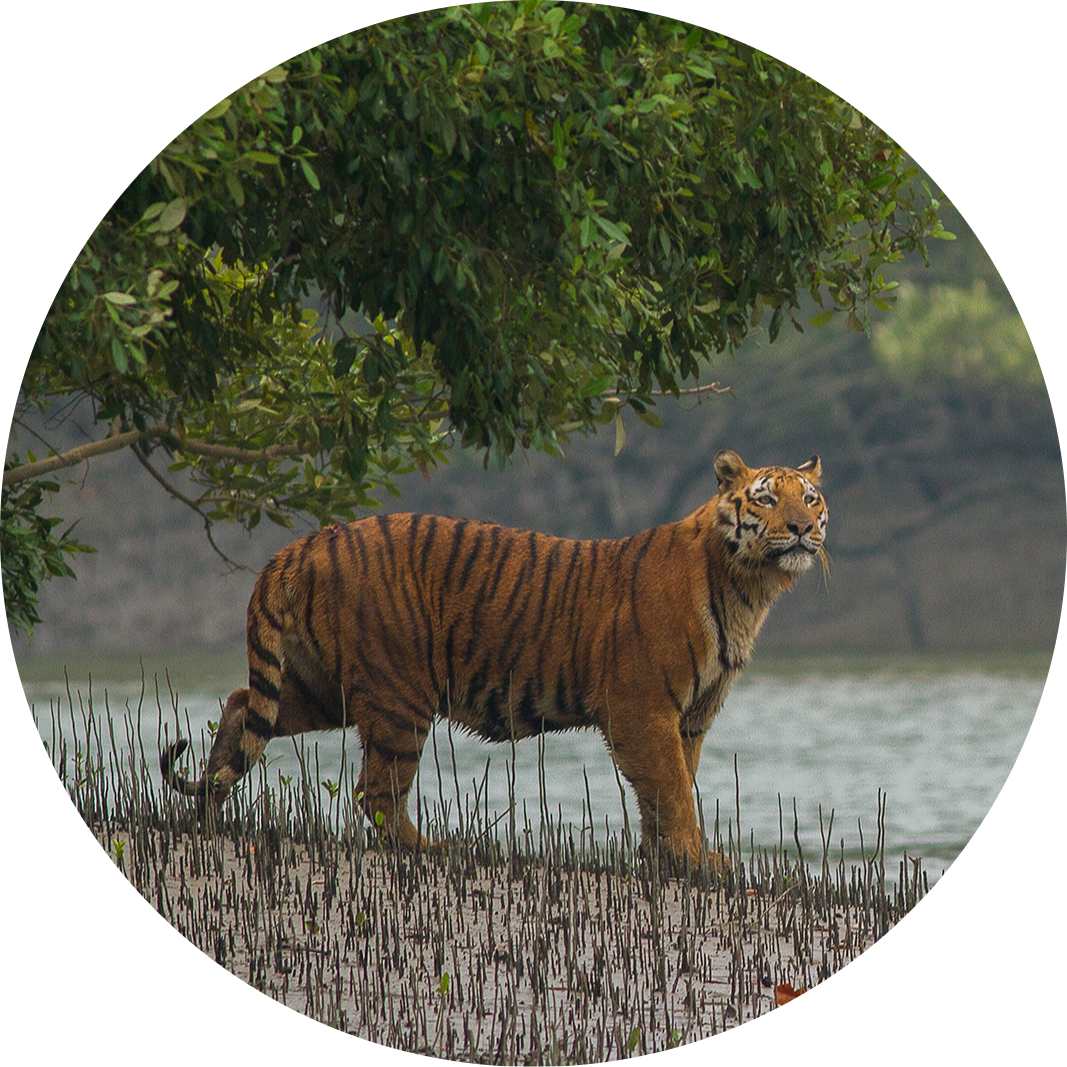The Sundarbans National Park, located in the southern part of West Bengal, India, is a UNESCO World Heritage Site and a part of the world's largest mangrove forest. It is known for its unique ecosystem, diverse wildlife, and the iconic Royal Bengal Tiger. The forest is situated in the delta region where the Ganges, Brahmaputra, and Meghna rivers meet the Bay of Bengal.